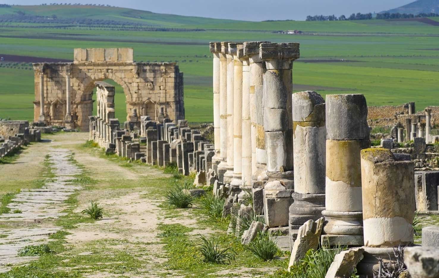 (1h30 de route) Visite de VOLUBILIS, ancienne capitale de la Mauritanie Tingitane qui fut la capitale de la Mauritanie sous Juba II.