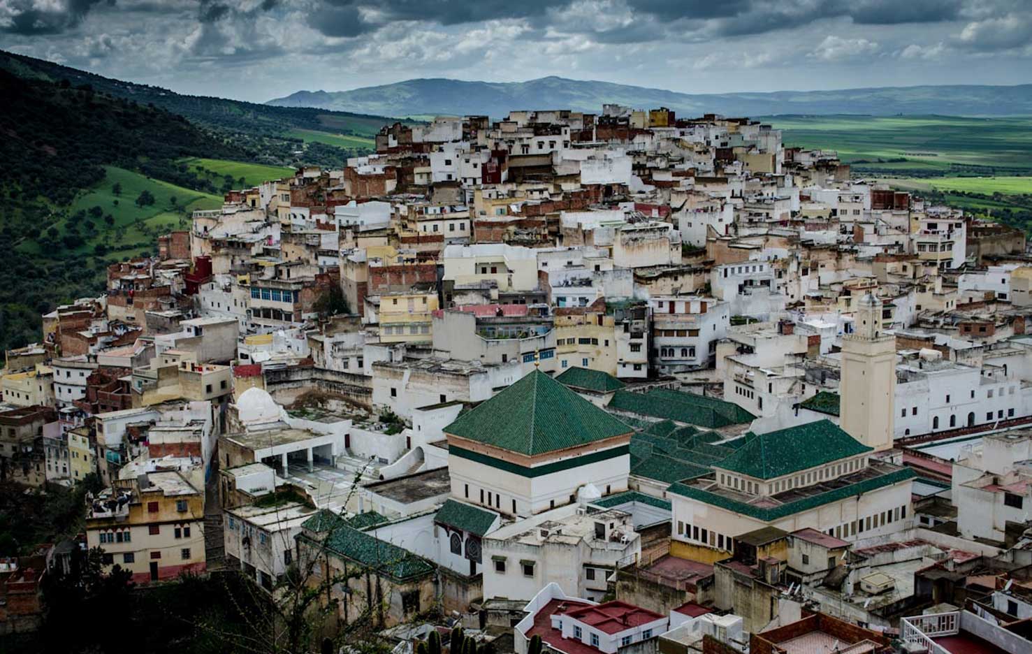 Arrêt panoramique à Moulay Idriss Zerhoun Déjeuner dans un restaurant typique à Meknès (Non inclus) Visite de cette ville impériale fondée par Moulay Ismaïl à la fin du XIVème siècle, dont l'œuvre gigantesque d'édification à travers le Maroc déclencha un immense écho qui parvint jusqu'en Europe à la Cour de France auprès du Roi Louis XIV. Tour de ville panoramique avec la découverte de la célèbre porte Bab el Mansour à l'architecture et aux motifs splendides, la porte Bab el Khemis, la ceinture des remparts, le Grenier, la place Lehdim.