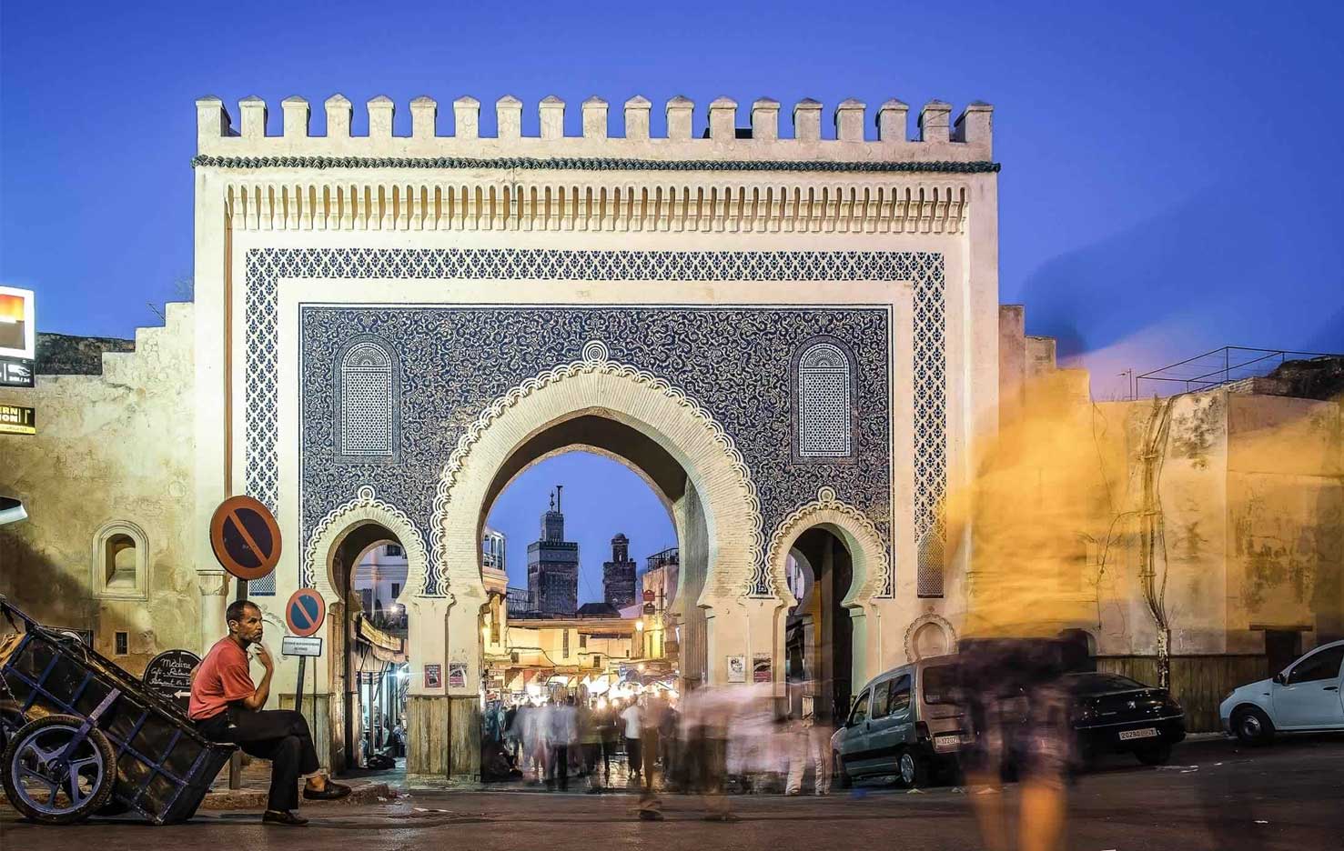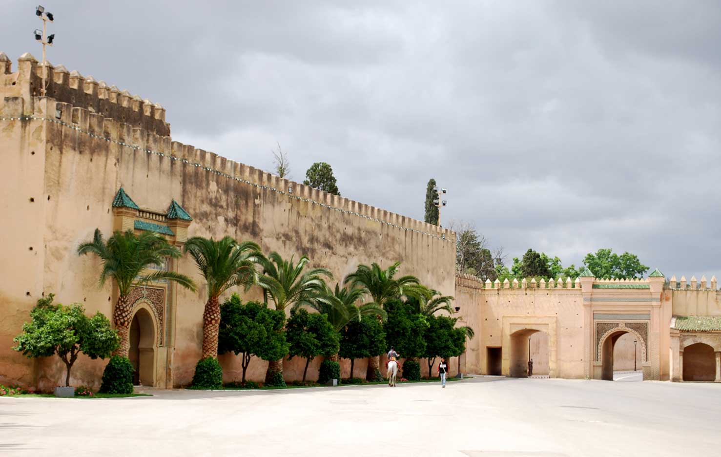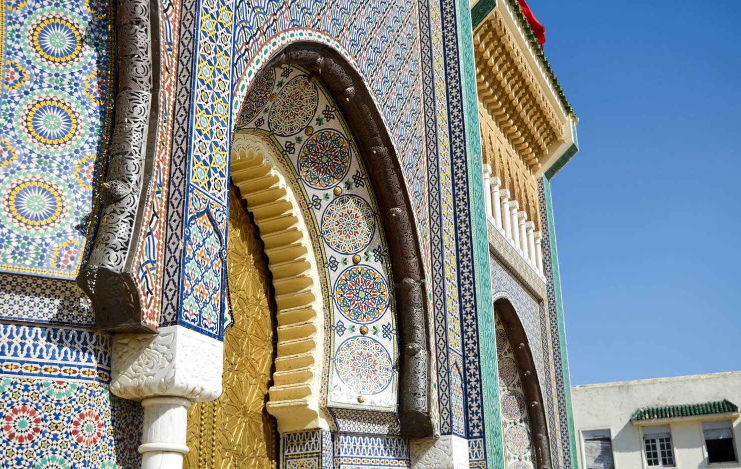Visite du musée de Batha et des jardins de Boujeloud, arrêt aux portes du Palais royal qui allient grandeur et finesse.
